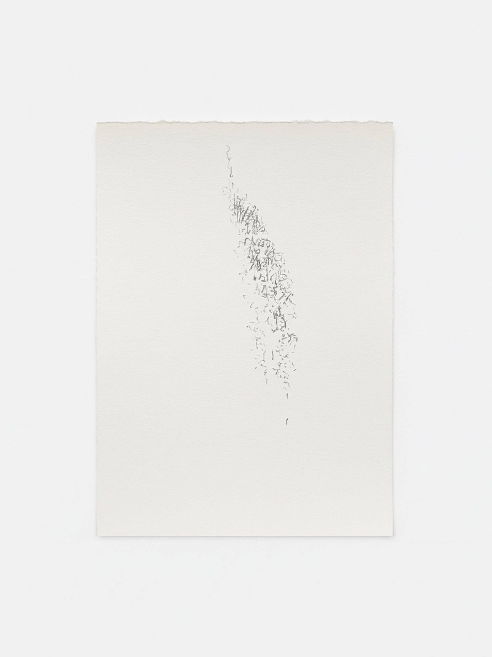 Where sculptures are shaped unseen in their closed moulds, becoming drawn out — the drawings unfold on the open surface, becoming drawn in.