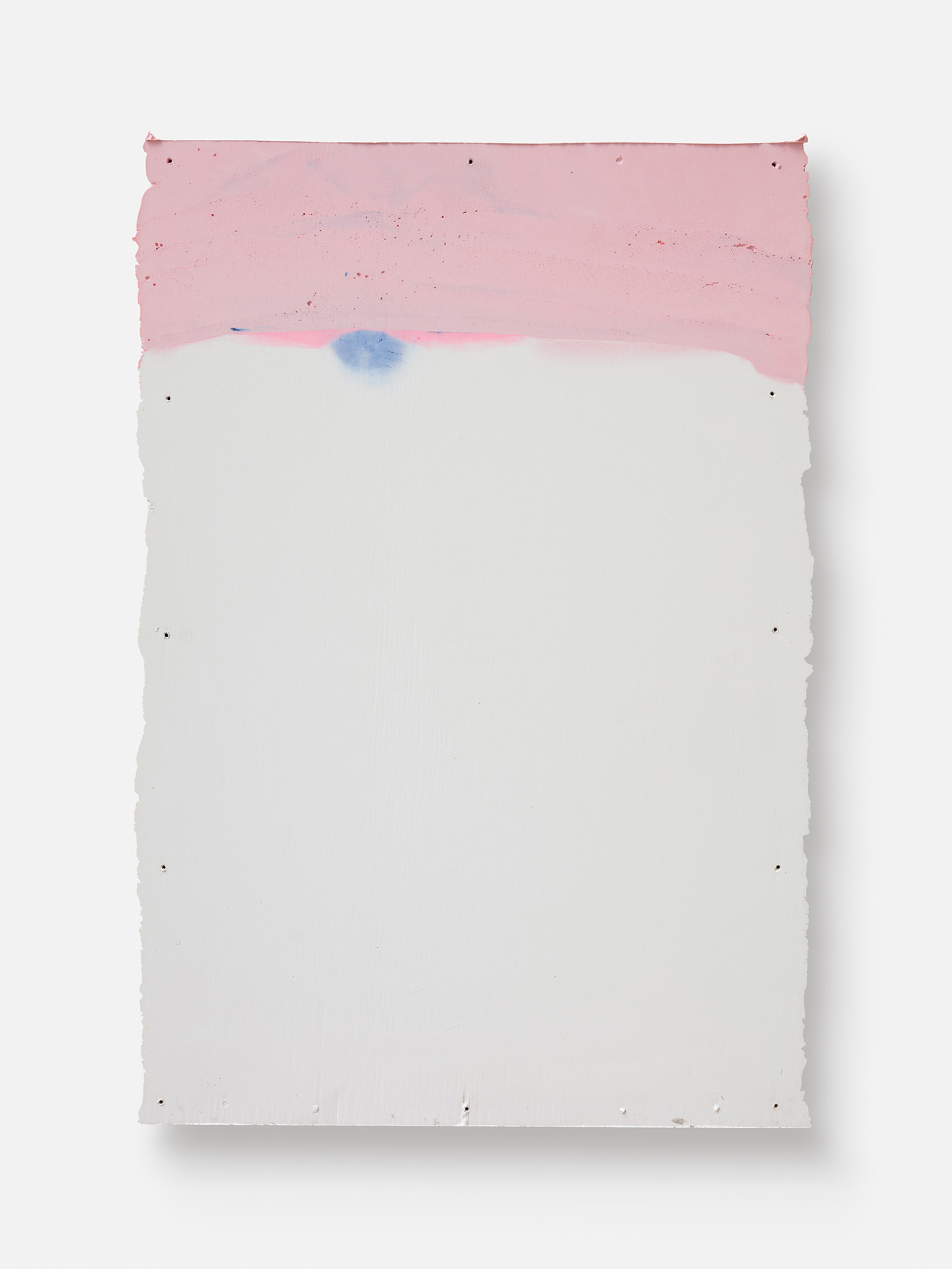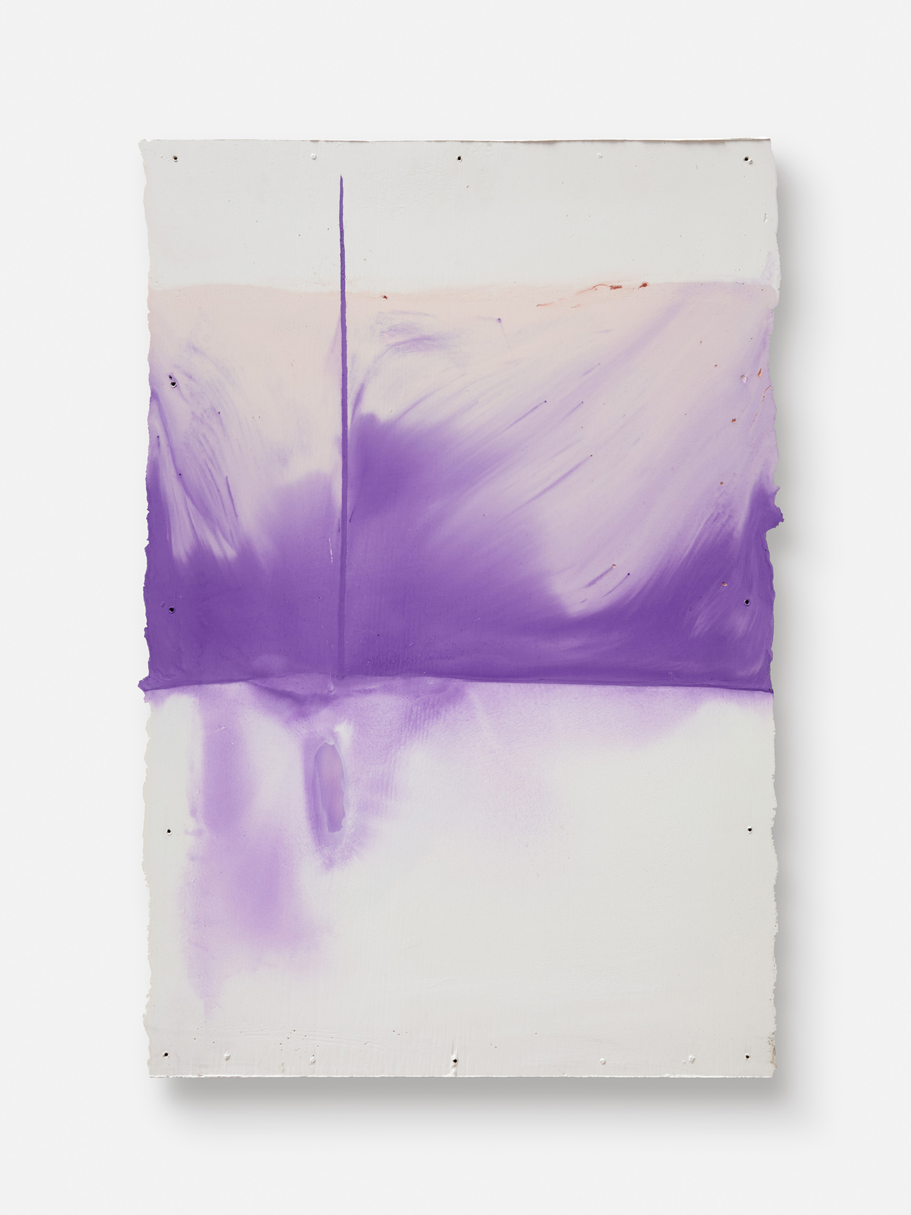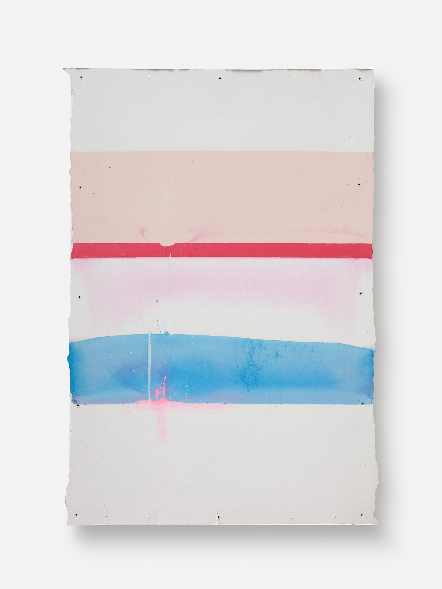 These works explore a literal architecture of pictorial space: the artist is interested in the lacuna behind the canvas, the shallow depth that painting usually obscures when constructing the illusory space of the picture. Here, an essentially sculptural process yields color gradients with a striking painterly appeal.