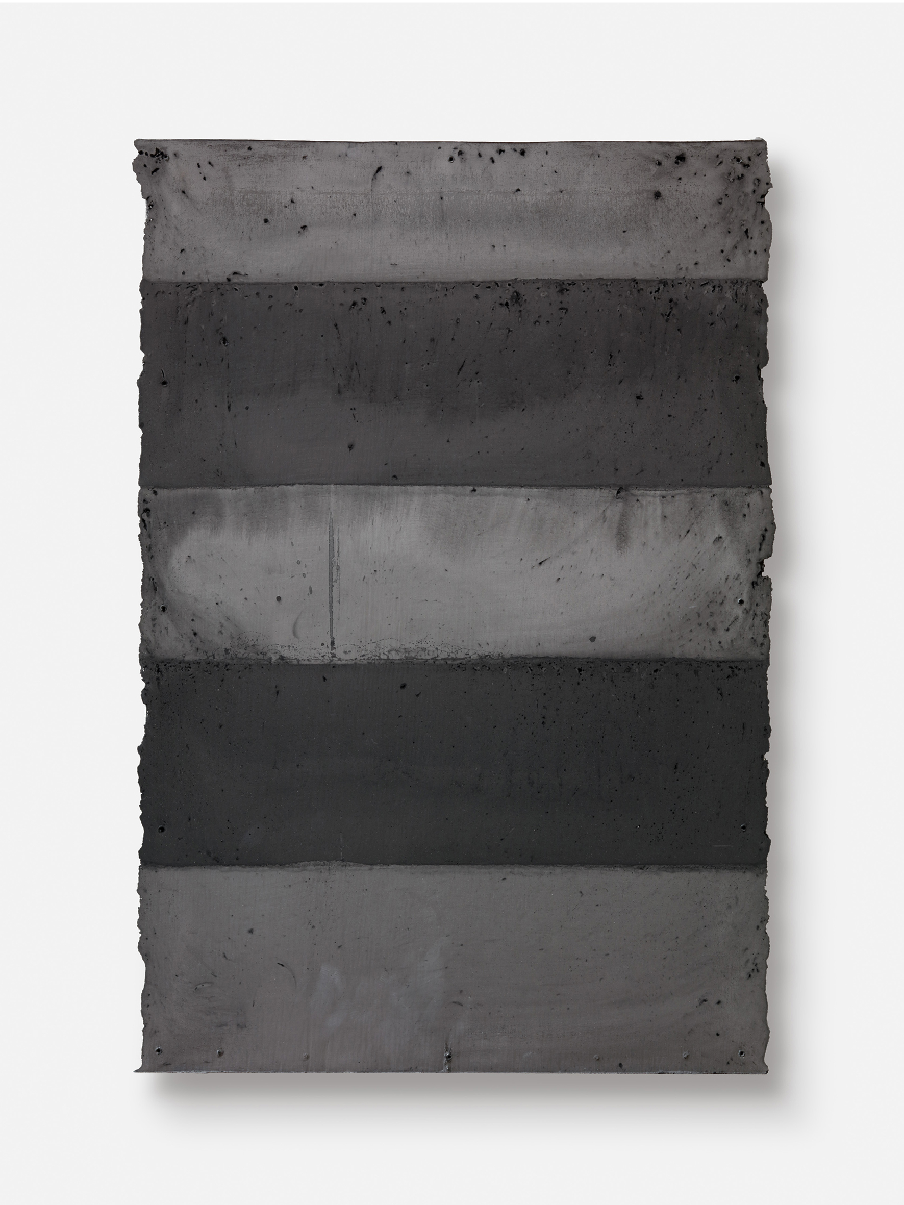 By 2009, with only space and his own body remaining, the artist creates molds from leftover materials, marking the boundaries of “the body in space” and filling them with pigmented plaster. This process of “filling” and “emptying” results in autonomous creations, remnants of an action, that seem almost to move through the surrounding space.